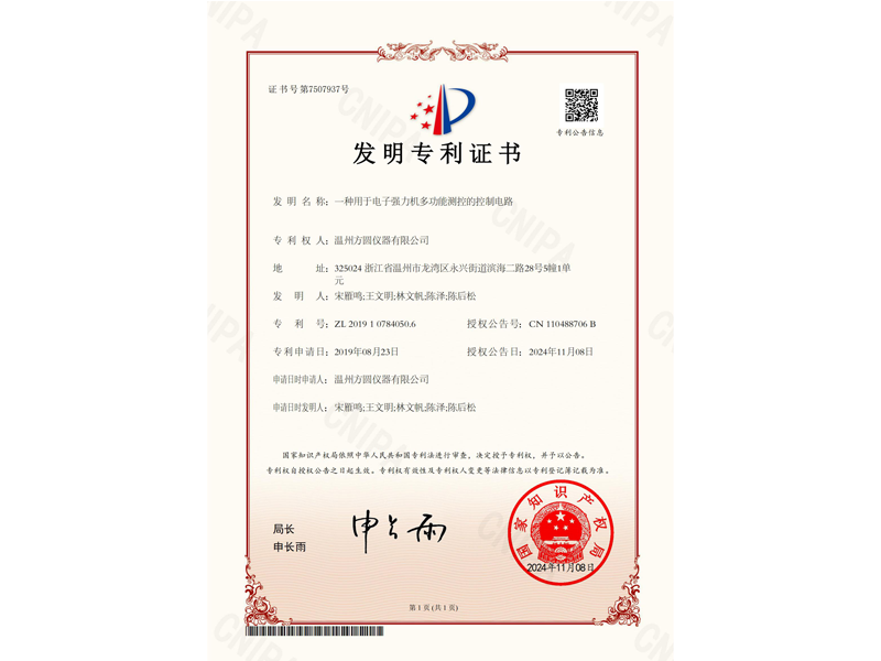中國發明專利:一種用于電子強力機多功能測控的控制電路(ZL 2019 1 0784050.6)