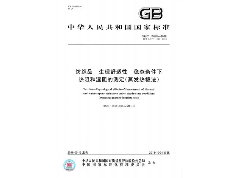 參與起草《紡織品生理舒適性穩態條件下熱阻和濕阻的測定》(GB/T 11048-2018),該標準由中華人民共和國國家質量監督檢驗檢疫總局、中國國家標準化管理委員會于 2018-03-15 發布