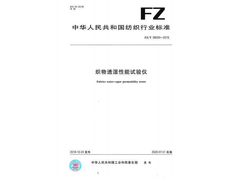 參與起草《織物透濕性能試驗儀》(FZ/T 98020-2019),該標準由中華人民共和國工業和信息化部于 2019-12-24 發布