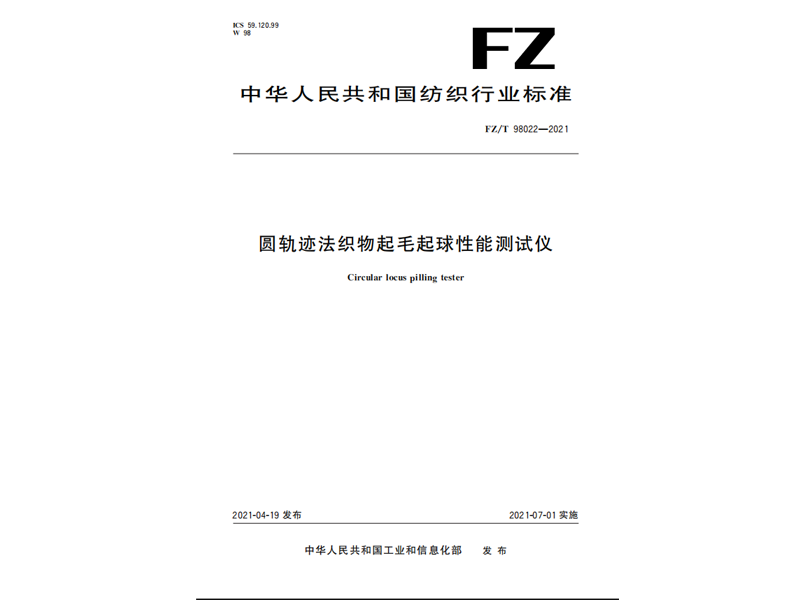 參與起草《圓軌跡法織物起毛起球性能測試儀》(FZ∕T 98022-2021),該標準由中華人民共和國工業和信息化部于 2021-04-19 發布