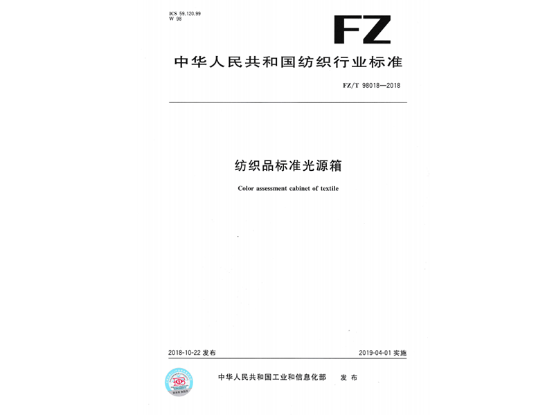 參與起草《紡織品標準光源箱》(FZ/T 98018-2018),該標準由中華人民共和國工業和信息化部于 2018-10-22 發布