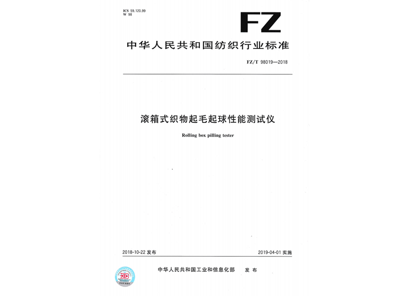參與起草《滾箱式織物起毛起球性能測試儀》(FZ/T 98019-2018),該標準由中華人民共和國工業和信息化部于 2018-10-22 發布